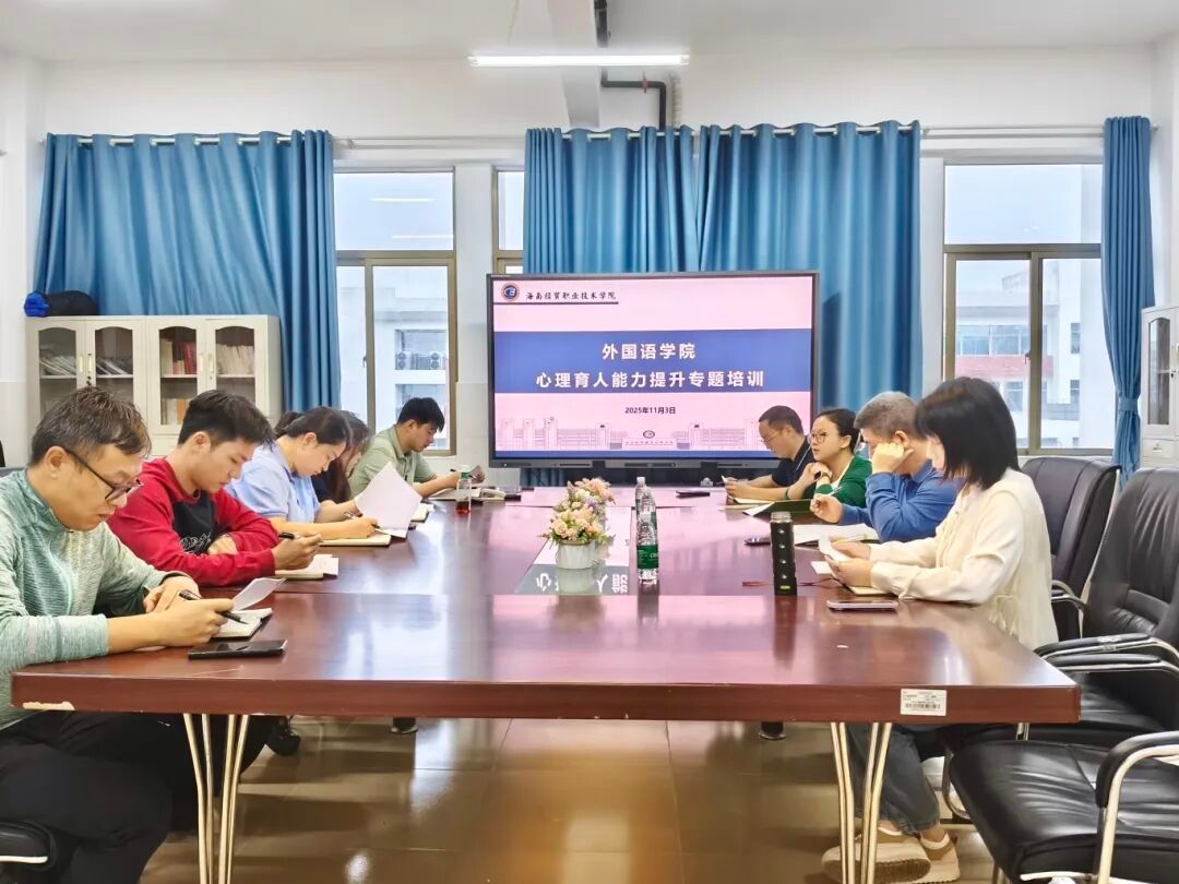 为深入贯彻落实立德树人根本任务,进一步提升学院辅导员队伍的心理育人工作水平,2025年11月3日,外国语学院邀请学校学工部心理中心主任周书妍给全体辅导员开展一场内容丰富、实用性强的心理育人能力提升专题培训。
