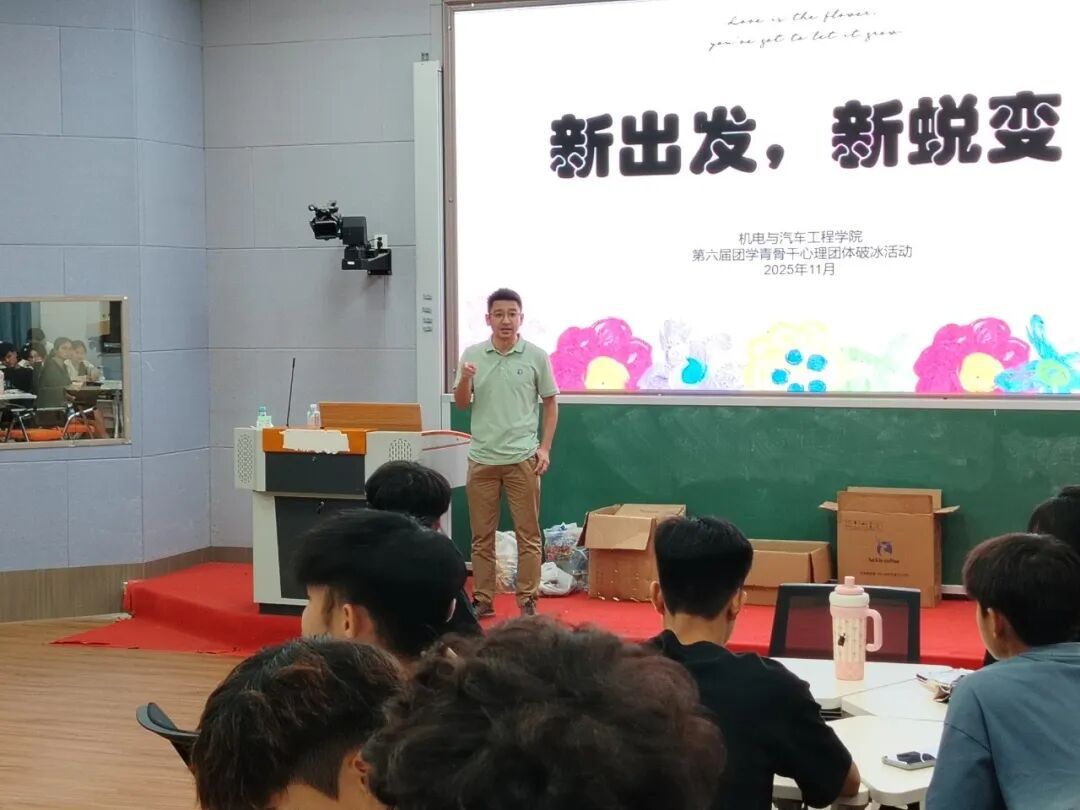 11 月 11 日中午,机电与汽车工程学院在 1 教 104 开展 “新出发,新蜕变” 主题团体心理辅导活动,24 级团学青各部门干部与 25 级新成员齐聚一堂,共赴这场温暖的成长之约。